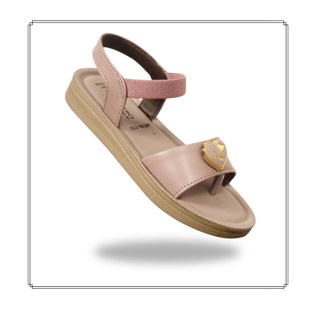 PU Sole Liteweight Ultra Soft Air-Cell cushion technology Kid’s sandal, elastic back strap for secure fit, stretchable ankle support, flexible strap for easy wear. breathable synthetic leather durable upper strap, a golden love symbol shaped buckle on the front strap keeps the sandal more charming.