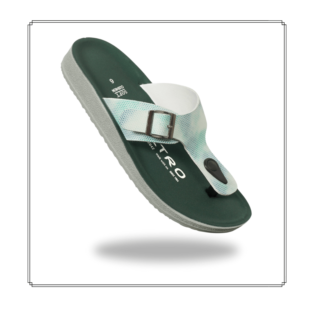 Air-Cell cushioned technology afloatium non-slip sole dition women’s daily wear sandal upper crafted with synthetic leather for more smooth waking experience