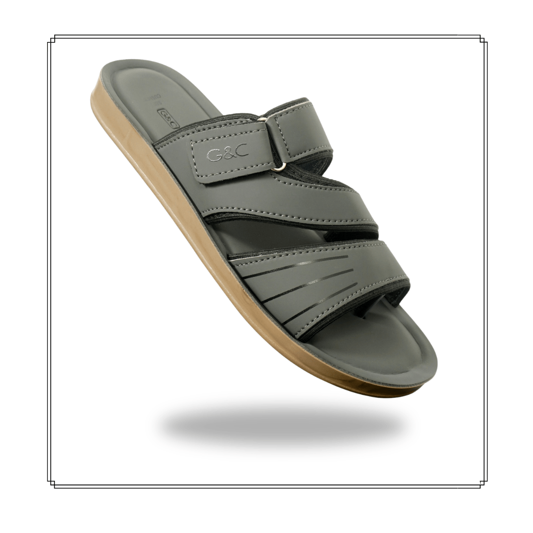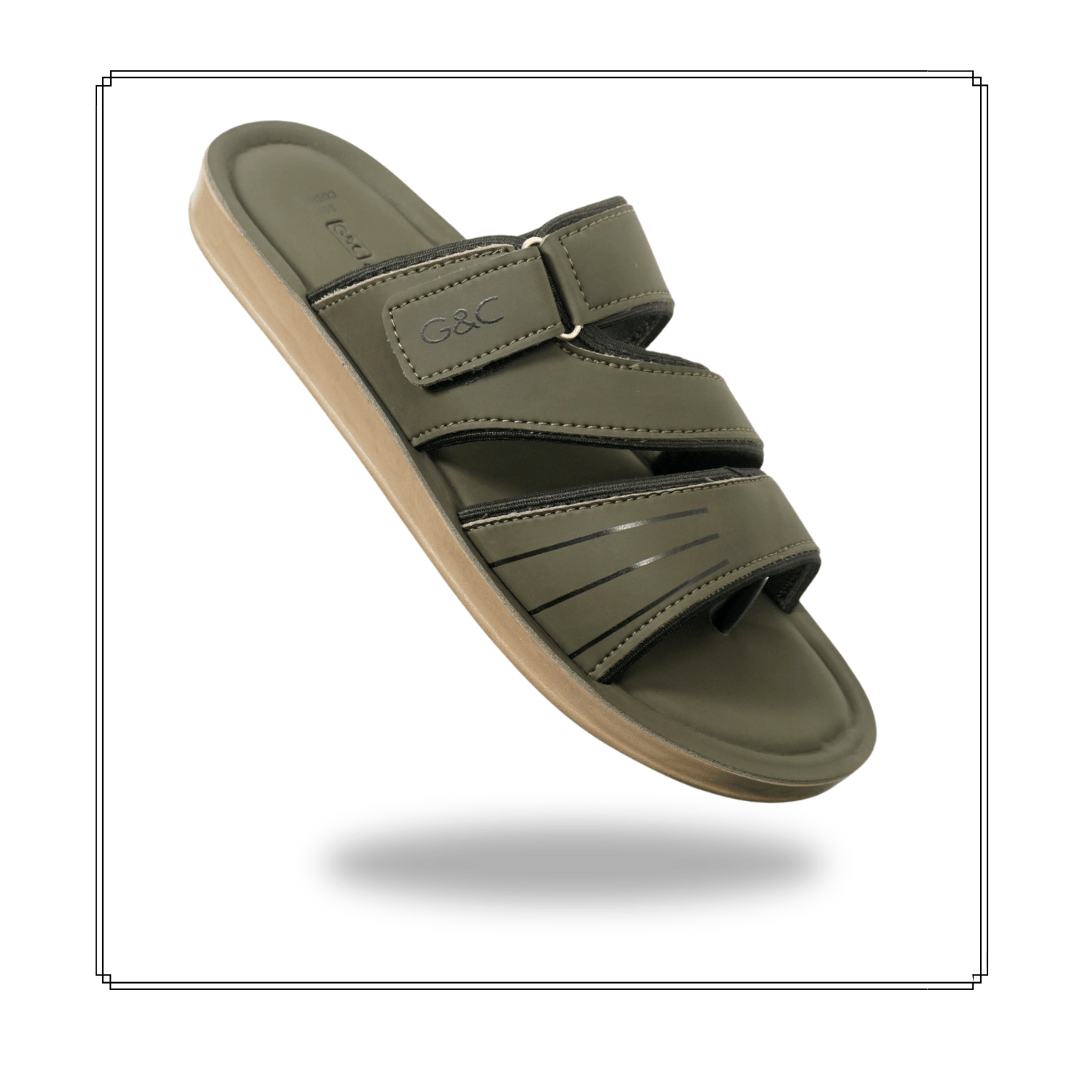 Multi color men’s daily wear stylish collection, upper strap drafted with well stiched shining lines pattern, silver buckle adjustable velcro.
